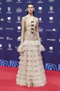 Entre los protagonistas de la noche, nombres como Blanca Soroa, Candela Peña, Leticia Dolera, Patricia López Arnaiz y Leonor Watling brillaron con propuestas que iban desde la elegancia clásica hasta apuestas arriesgadas y modernas, demostrando que la creatividad también se luce fuera de la pantalla. Cada vestido, traje o conjunto contaba una historia: faldas de tul con estampados florales, trajes de corte impecable, vestidos de gasa fluidos o piezas estructuradas con detalles metálicos, todo acompañado de joyas y accesorios que elevaban cada look al siguiente nivel.