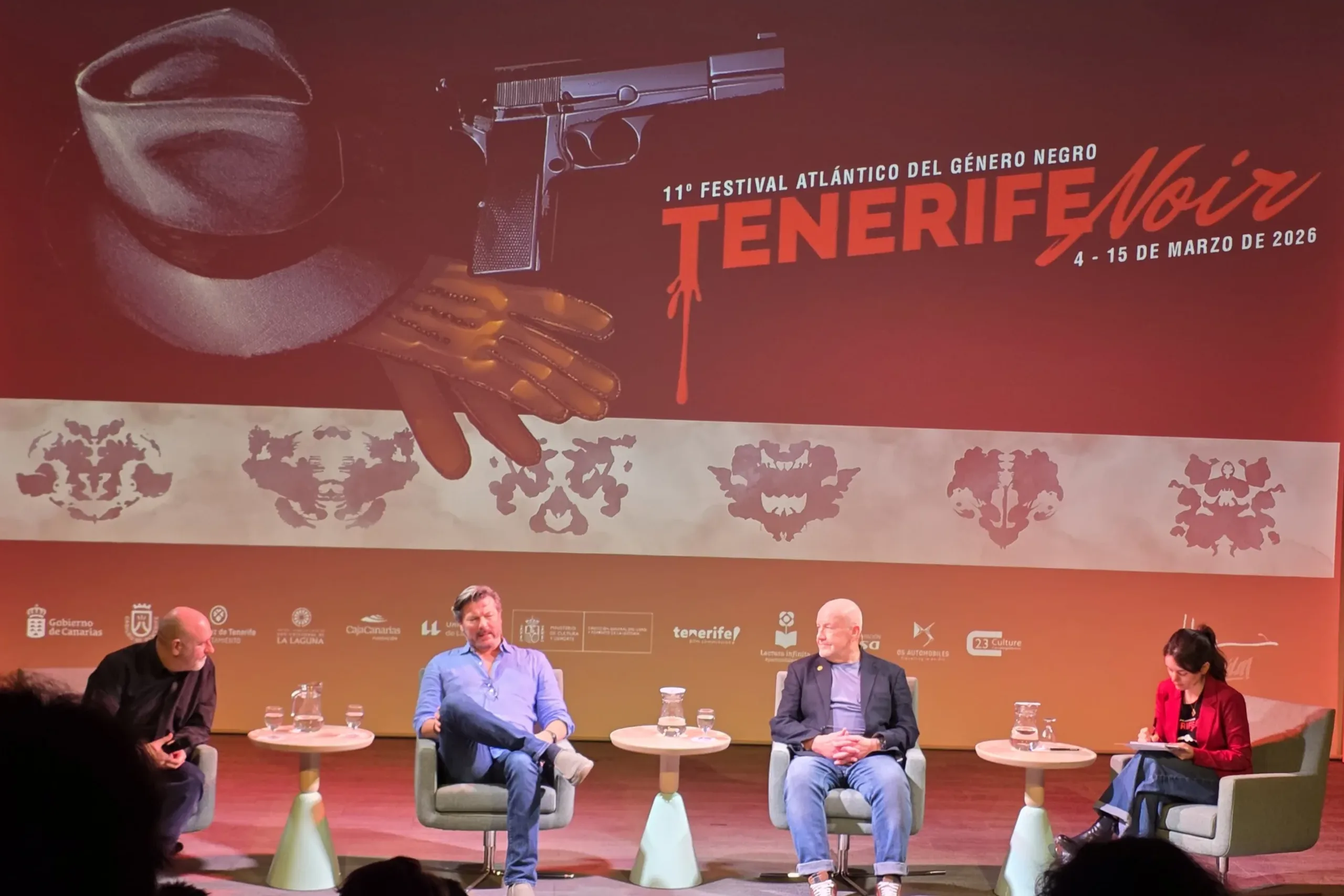 El Festival Tenerife Noir acogía este domingo a partir de las 15:30 el coloquio «¿Quién vigila a los vigilantes? Watchmen, 40 años de una obra que cambió la oscuridad del héroe». Una mesa redonda en el Espacio Cultural de Fundación Caja Canarias con John Higgins (colorista de la novela gráfica Watchmen) y David Hayter (guionista de la adaptación cinematográfica de Watchmen), después de que el público presente disfrutara de la proyección de la película, versión Ultimate Cut en versión original.